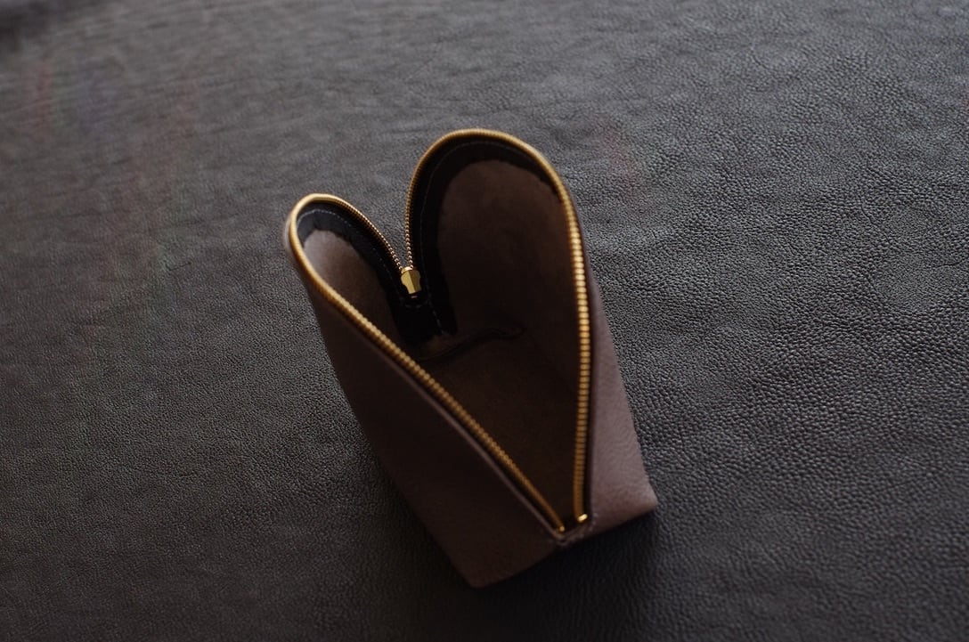 タンニンなめし特有の「渋(しぶ)」が空気に触れ、内部のオイルが表面にじみ出ることで、短期間で色が深くなり、美しい艶が生まれます。使うほどに柔らかく手になじみ、自分だけの味わいが出てくるのが魅力です。